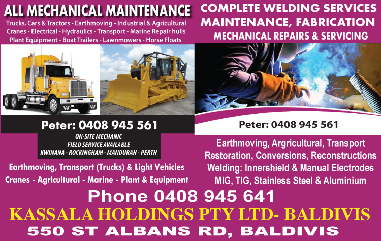 KASSALA HOLDINGS PTY LTD offer a Complete Welding Service from Maintenance, Fabrication, Mechanical Repairs & Servicing to Earthmoving, Agricultural, Transport, Restoration, Conversions, and Reconstructions.