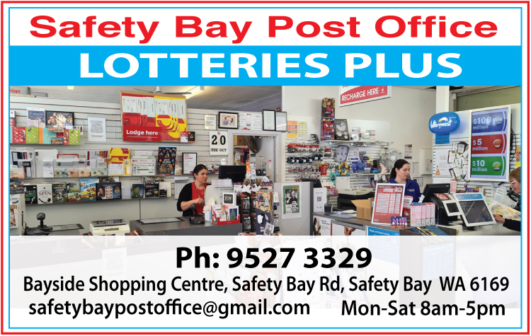 Safety Bay Licensed Post Office Lotteries Plus is family owned and operated and offer a wide variety of services including full Postal Services combined with Lotteries Plus and fully stocked Newsagency.: