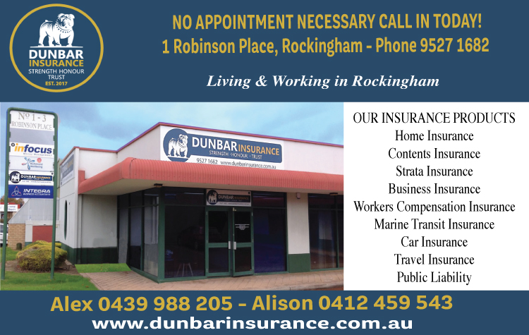 DUNBAR INSURANCE – OFFERING ONE ON ONE CONSULTATION – ALL INSURANCE ENQUIRIES WELCOME PLEASE PHONE OR EMAIL – MOBILE SERVICE AVAILABLE ON REQUEST.